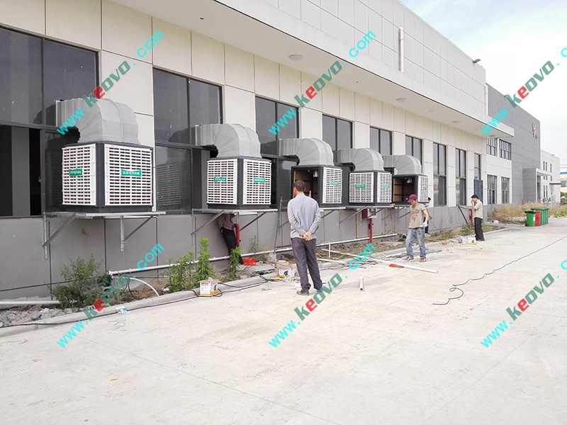 凱美恒蒸發式冷風機的核心降溫部件是高效蒸發式濕簾“多層波紋植物纖維疊合物”。根據“水蒸發吸收熱量,蒸發面積影響蒸發效率”這一自然物理現象,通過風機往室內送風,使機內產生負壓,室外的空氣流經浸水的濕簾后空氣與水份充分接觸同時吸收空氣中的顯熱,從而達到降溫、換氣、除塵、增加鮮風的目的, 車間內環境惡劣的情況下,傳統空調不能進行車間氣流更換,直接的室內循環讓車間的空氣環境更惡劣,直接導致員工及產品出現反面的影響,凱美恒環保空調可實現送新風,根本性質的改善了車間的環境,在某些人員密集的車間場所,可結合傳統空調,達到降溫以及改善環境的效果;
